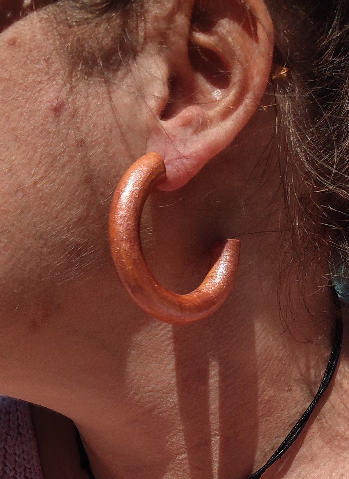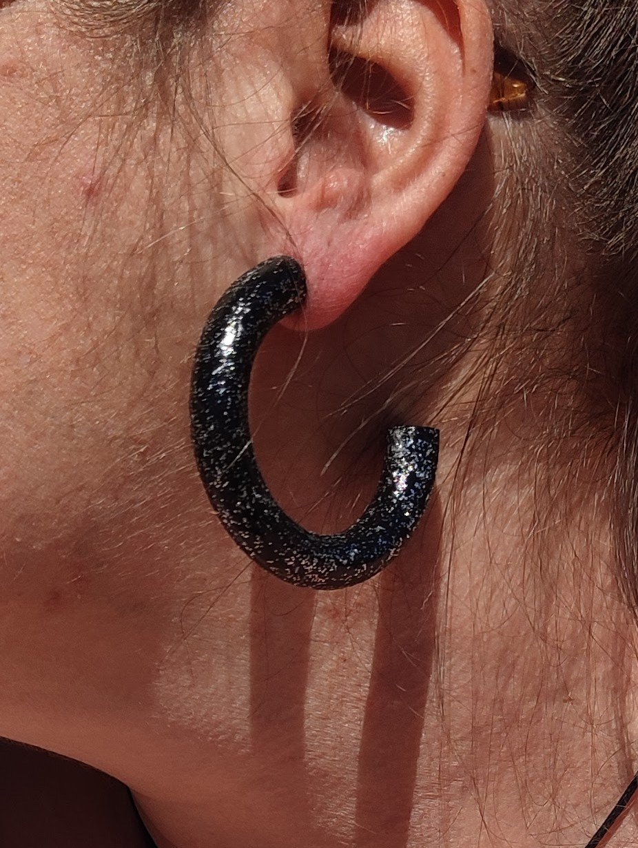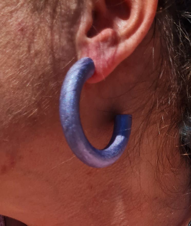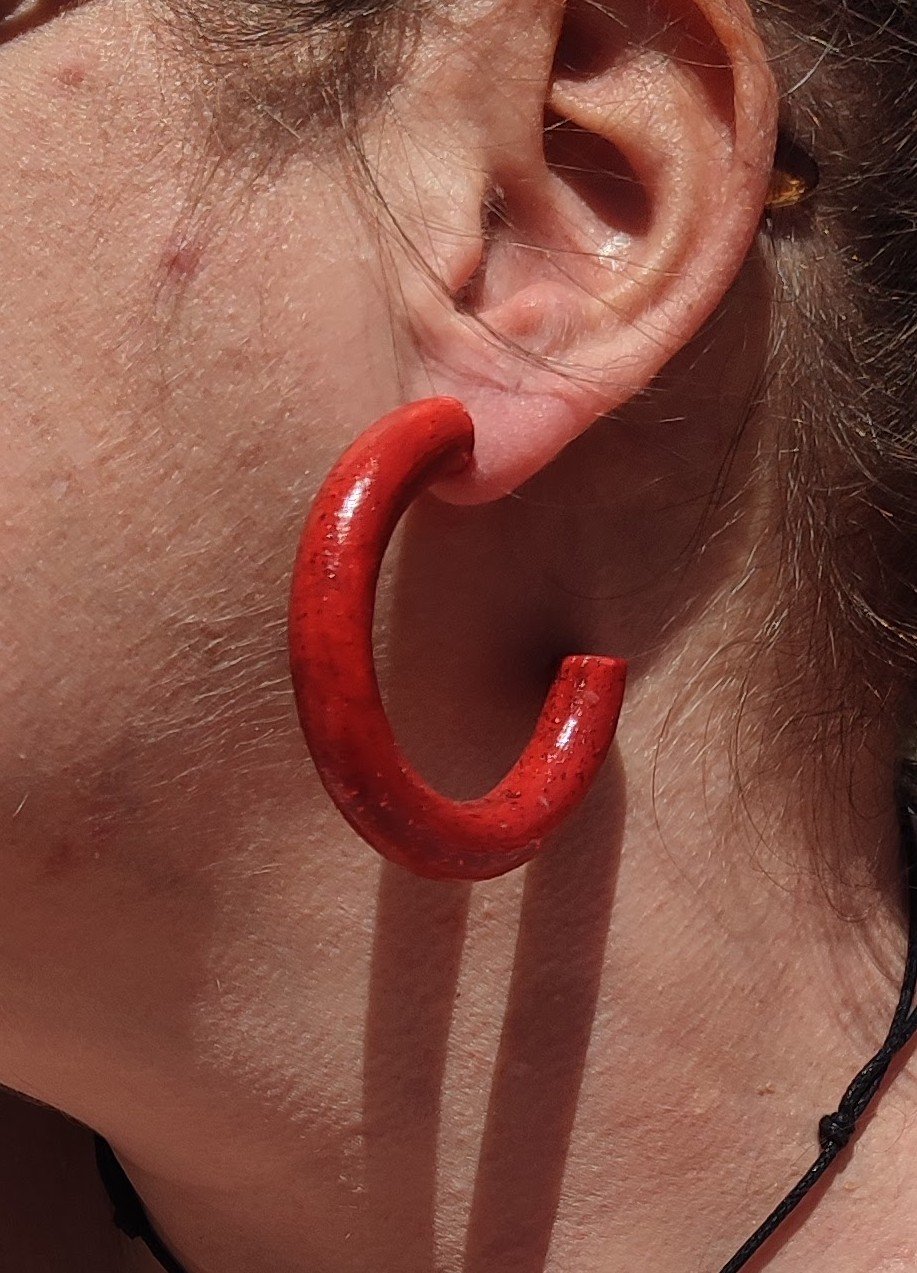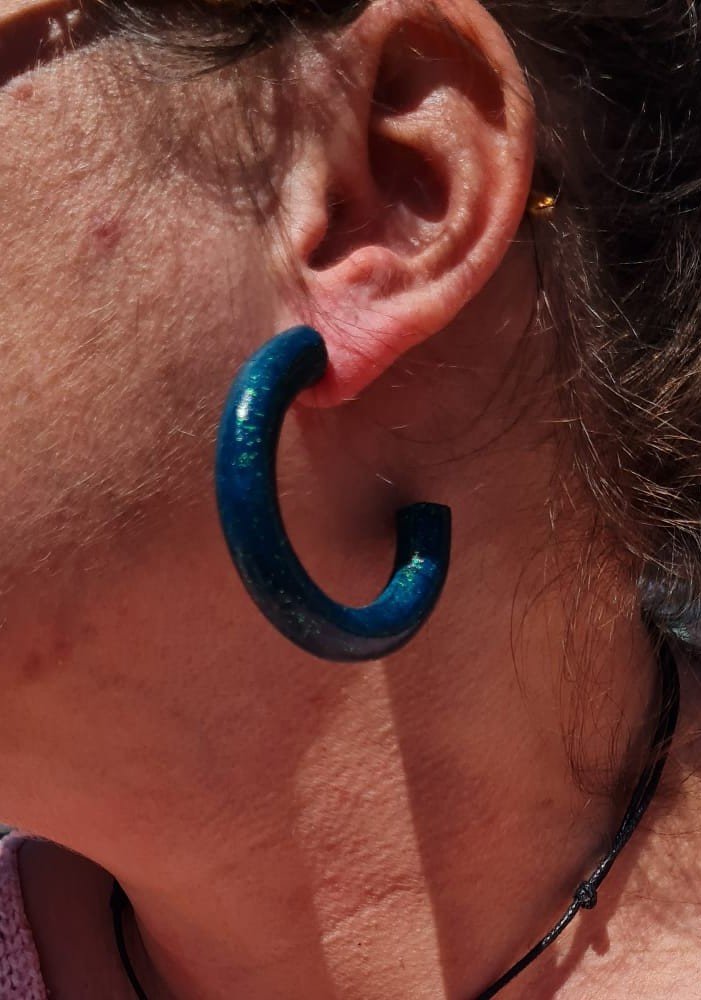 - Créoles en bois recyclé montées sur acier inoxydable