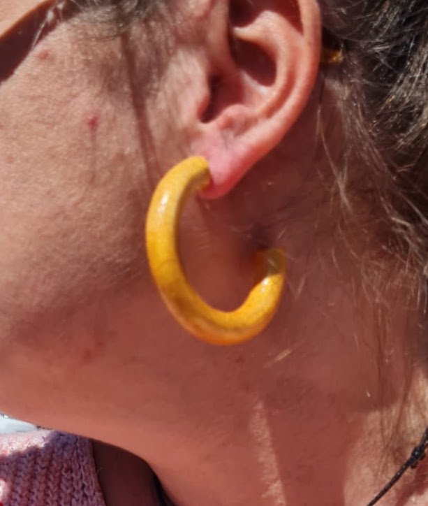 Issues d’un passé détourné, ces boucles d’oreilles font revivre d’anciens anneaux en bois de tringlerie. Montées sur une base en acier inoxydable, elles se déclinent en deux tailles (5,5 cm et 7,5 cm). Légères, naturelles, et pleines de caractère, elles incarnent l’élégance du recyclé et la force du bijou artisanal.